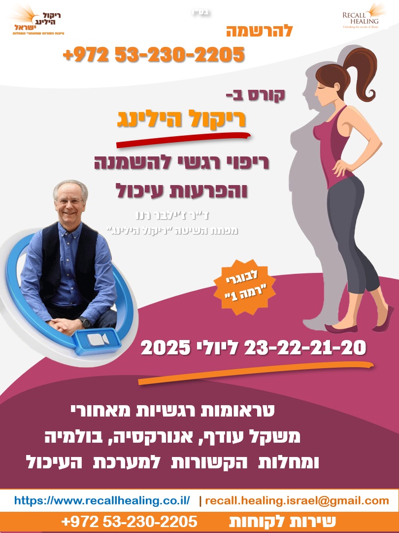 This Overweight workshop in Recall Healing which includes not only many emotional conflicts behind overweight but also behind so many other digestive disorders such Diabetes, Bulimia, Anorexia, Crohn’s, Ulcerative colitis and many others through the whole concept of Recall Healing.
